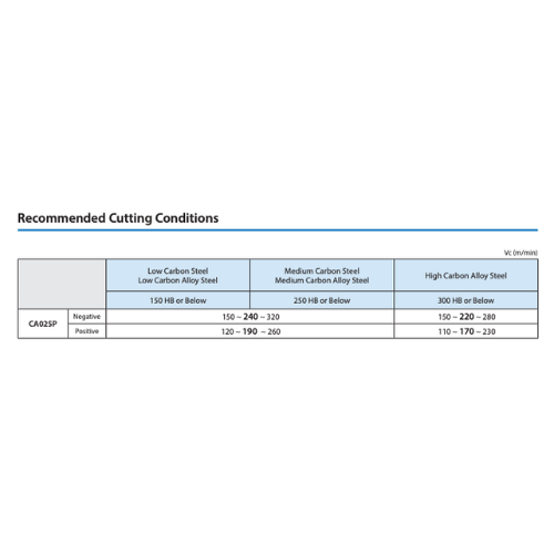 • CA025P Grade – MEGACOAT TOUGH: Advanced CVD-coated carbide offering exceptional toughness, thermal resistance, and durability for general steel turning.