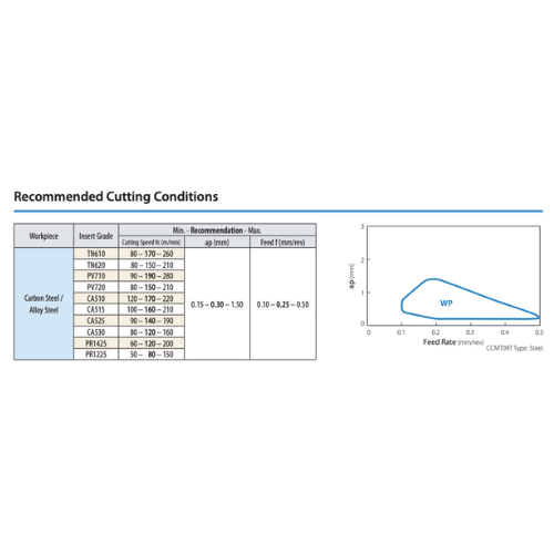 • Cutting Depth (ap): 0.5 – 4.0 mm