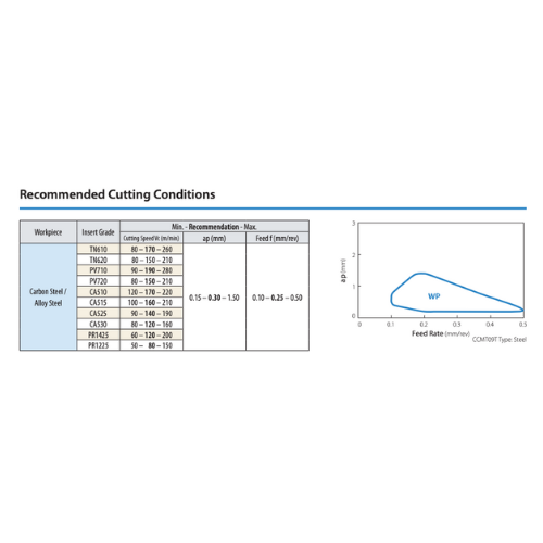 The Kyocera ZCMT12T306 PR1225 is a high-performance indexable drill insert designed for use with the Kyocera MagicDrill DRZ modular drilling system. It is optimized for general-purpose drilling across a wide range of materials including carbon steels, alloy steels, and stainless steels. The insert features a robust geometry for stable cutting, low cutting resistance, and efficient chip evacuation during deep-hole operations. Manufactured with Kyocera’s advanced PR1225 MEGACOAT NANO PVD-coated carbide grade, it provides an excellent balance of toughness and wear resistance, ensuring long tool life and consistent hole quality even under demanding production conditions.