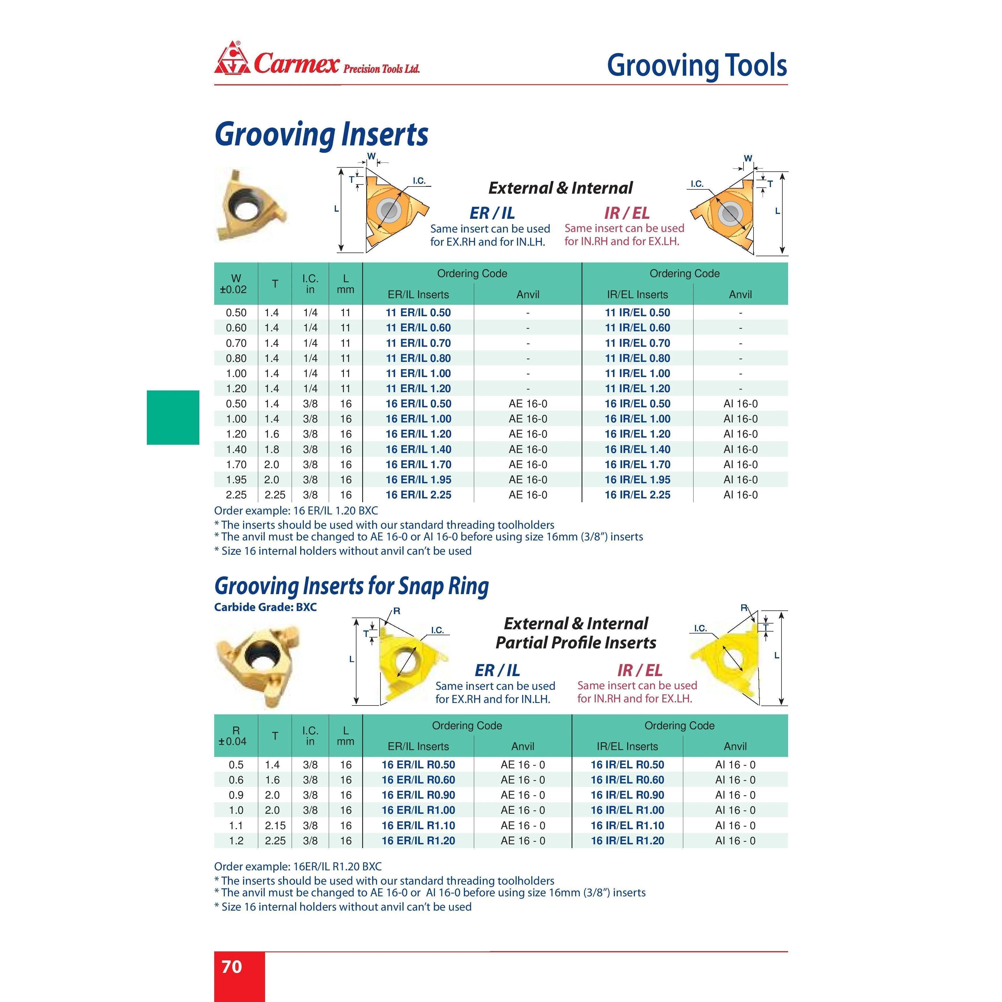 The Carmex 16 IR/EL 1.20 BXC is a precision internal grooving insert engineered for creating narrow, accurate grooves, recesses, and reliefs with a 1.20 mm cutting width. It ensures consistent groove geometry, smooth chip control, and excellent surface finish for fine internal grooving applications in small-diameter bores.