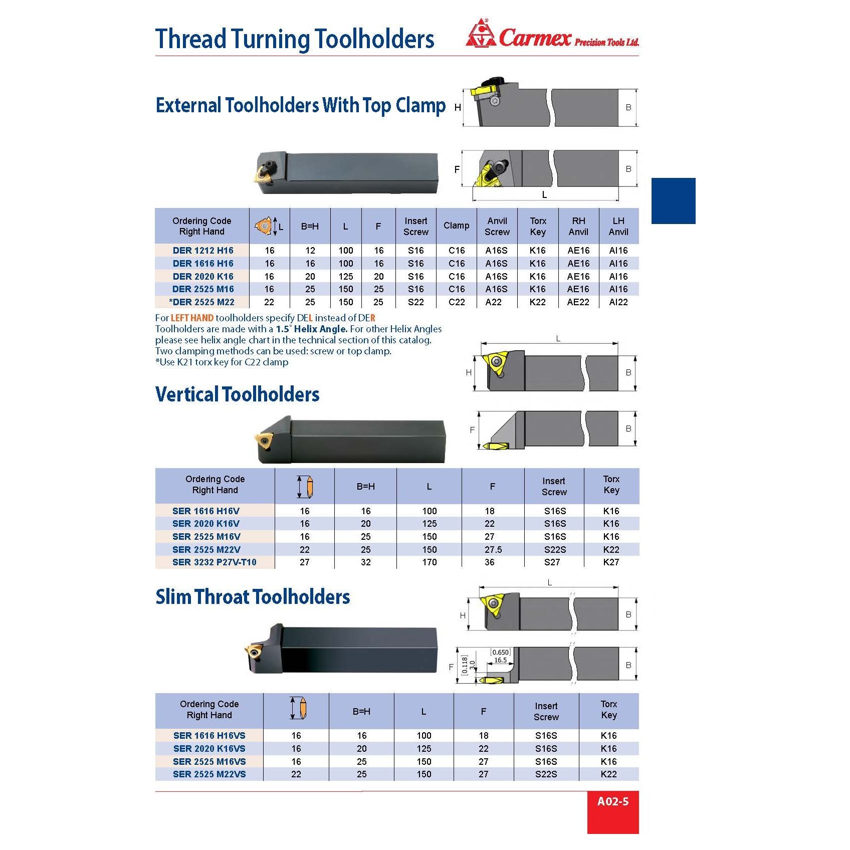 Manufactured by Carmex Precision Tools Ltd.—a global leader in advanced threading and grooving technologies—the DER 1212 H16 ensures high performance, durability, and accuracy in all external threading applications.