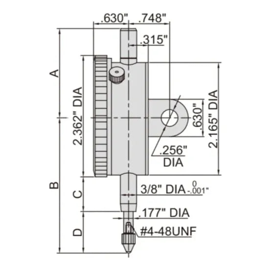 INSIZE MEASURING EQUIPMENT Insize Imperial Lug Back Dial Indicator 1" Range Series 2307-105